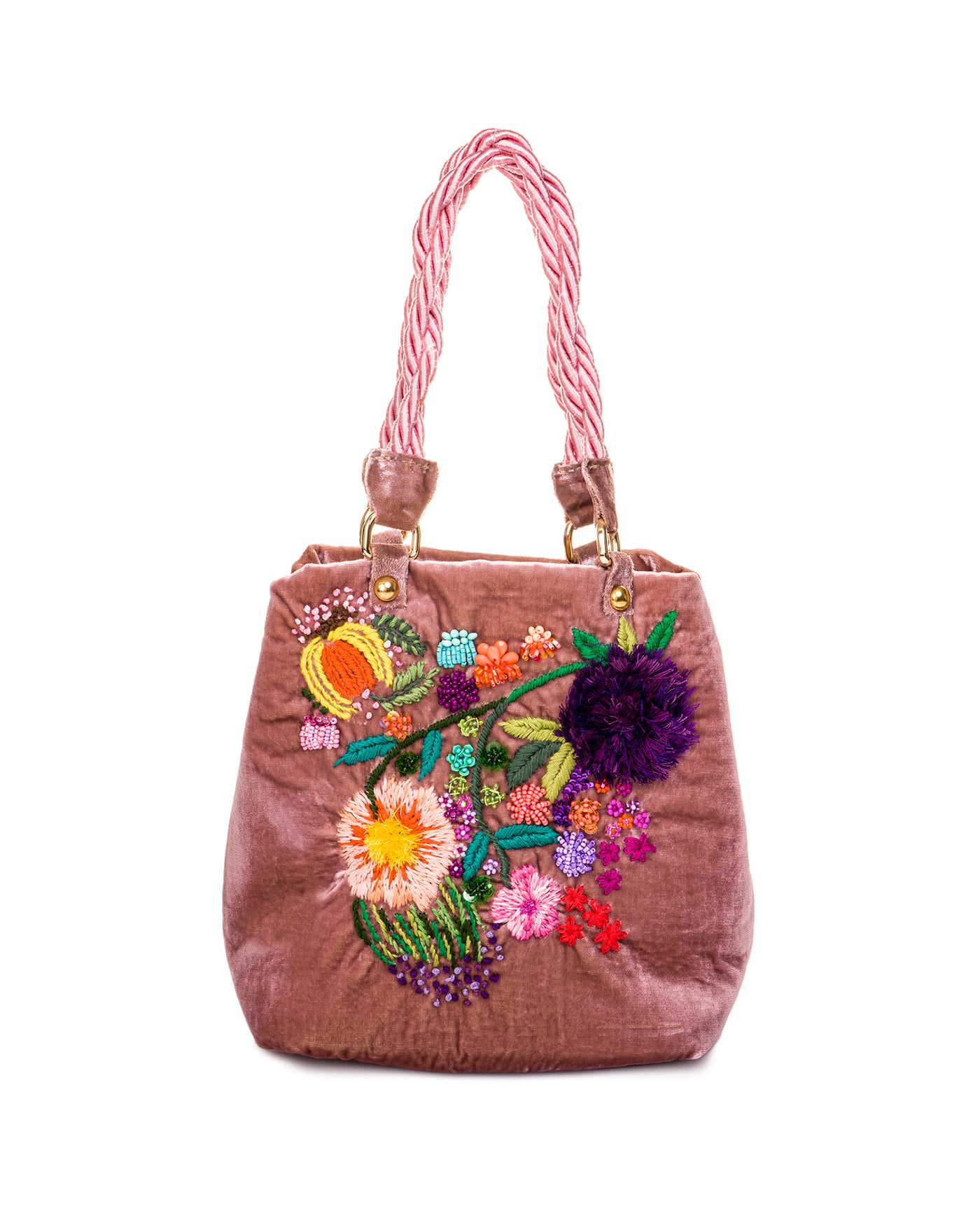 Bolso bordado con acabado - de color Rosado palo de rosa elaborado en Textil terciopelo de seda de la marca LOLILU