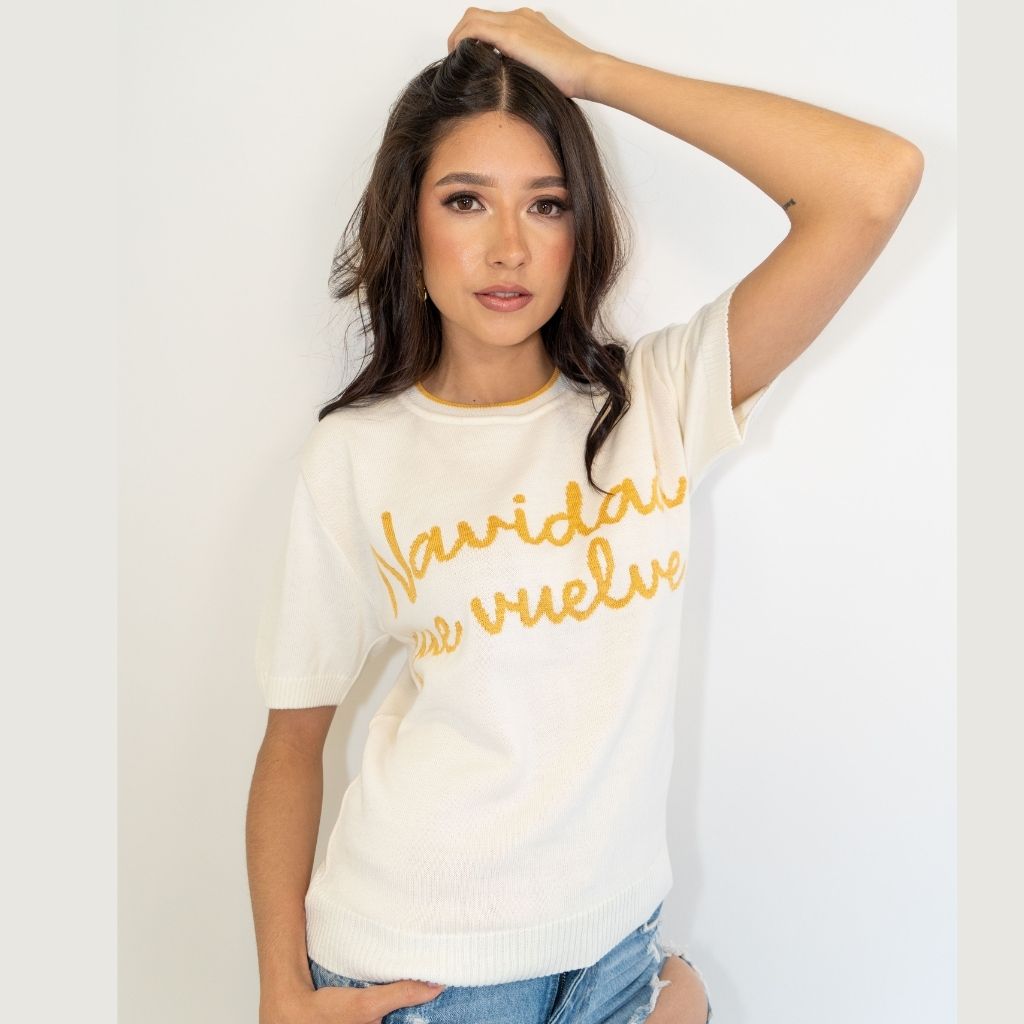 Sueños de Navidad con diseño Manga corta elaborado en Hilo de la marca PUNTO Y APARTE - Estampado navidad multicolor / M